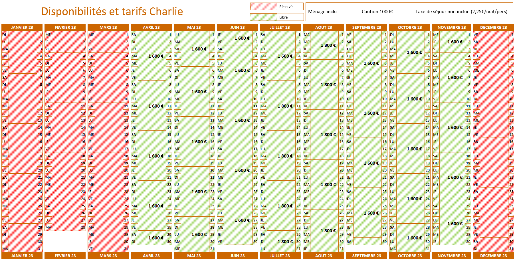Type de réservation : À la semaine (7 nuits). Courts séjours sur demande.
